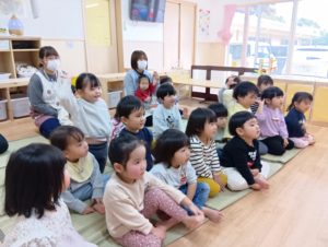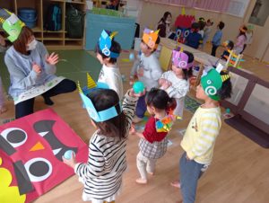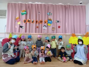 2025年2月5日 / 最終更新日時 : 2025年2月5日 nakai 0・1・2歳児☆豆まき会☆ 2025.2.3(月) おひさま組・つき組・そら組で豆まき会を行いました👹 鬼退治の後は・・・ お楽しみ給食✨鬼さんカレーライスでした😋