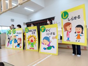 2024年10月17日 / 最終更新日時 : 2024年10月17日 nakai ~防犯教室~ 2024.10.16(水) 大河原警察署の方々が来園し、防犯教室を行ってくれました❕ 🦑いかのおすし🦑のお約束、しっかり覚えたね! これからもお約束を守って、安全に元気に過ごそうね😊 大河原警察署の皆様、ありがとうござました✨